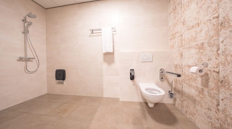 Alle slaapkamers (9) en badkamers (9) bevinden zich op de begane grond zodat het ook voor gasten die slecht ter been zijn prima geschikt is. De accommodatie beschikt bovendien over een MIVA kamer, met een volledig aangepaste badkamer.